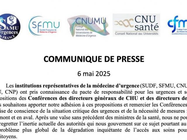 Publié le 07/05/2025Les principales instances de la médecine d’urgence saluent le pacte de responsabilité pour les urgences proposé par les [...]
