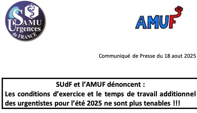 Publié le 18/08/2025SUdF et l’AMUF dénoncent : Dans un contexte de canicule et de pénurie record de lits d’hospitalisation, aggravée [...]