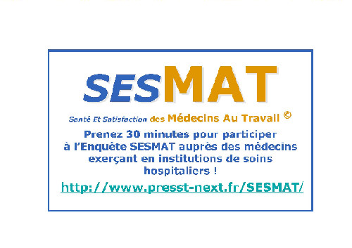 L’enquête SESMAT (Santé Et Satisfaction des Médecins Au Travail) s’inscrit dans le prolongement de l’enquête PRESST-NEXT (Promouvoir en Europe santé et satisfaction des soignants au travail –Nurses’ early exit study) qui a analysé .../...